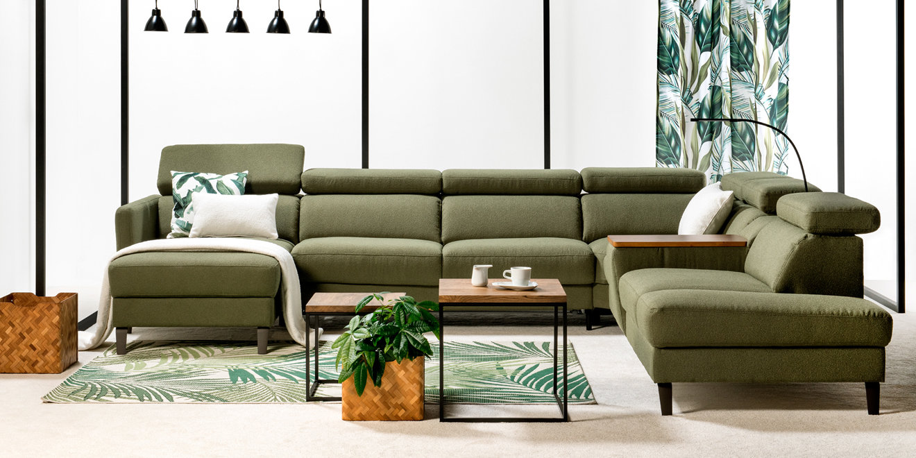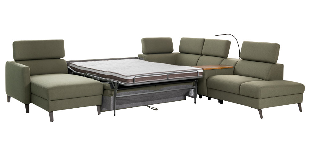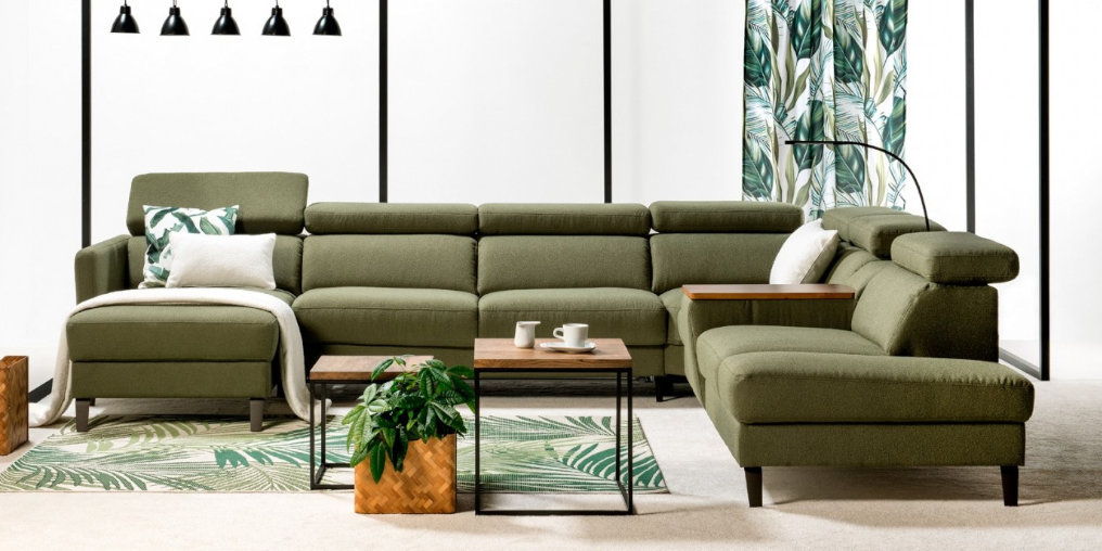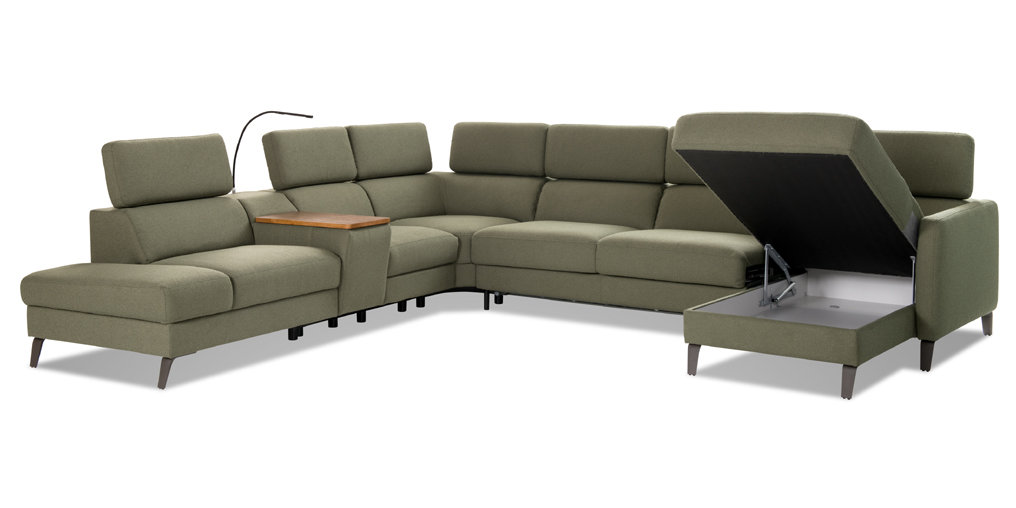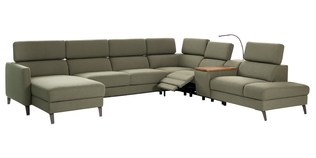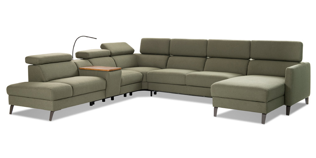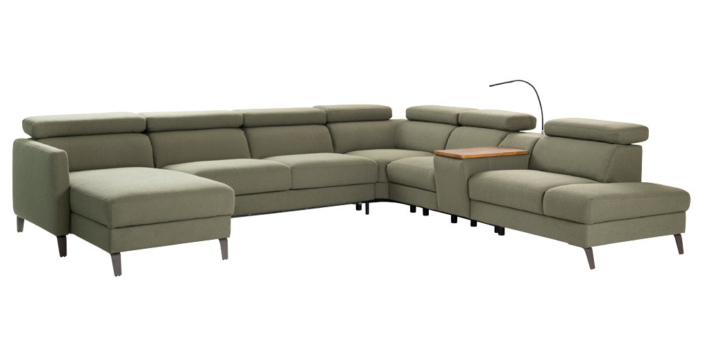 - rozbudowany układ narożny w kształcie litery „U” – idealny do większych salonów i rodzinnych stref wypoczynku,
