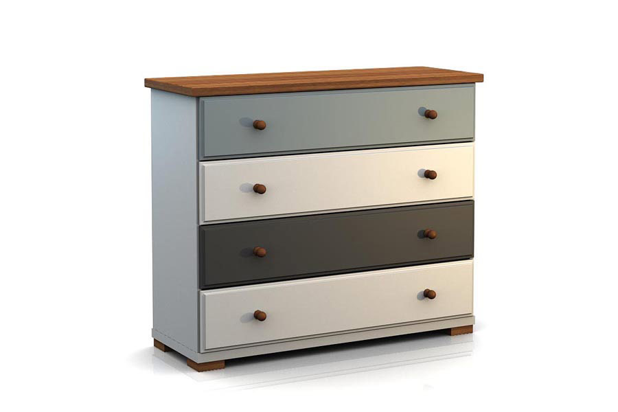 Wybarwienie: standardowo biały z frontami szuflad w kolorze szarym,