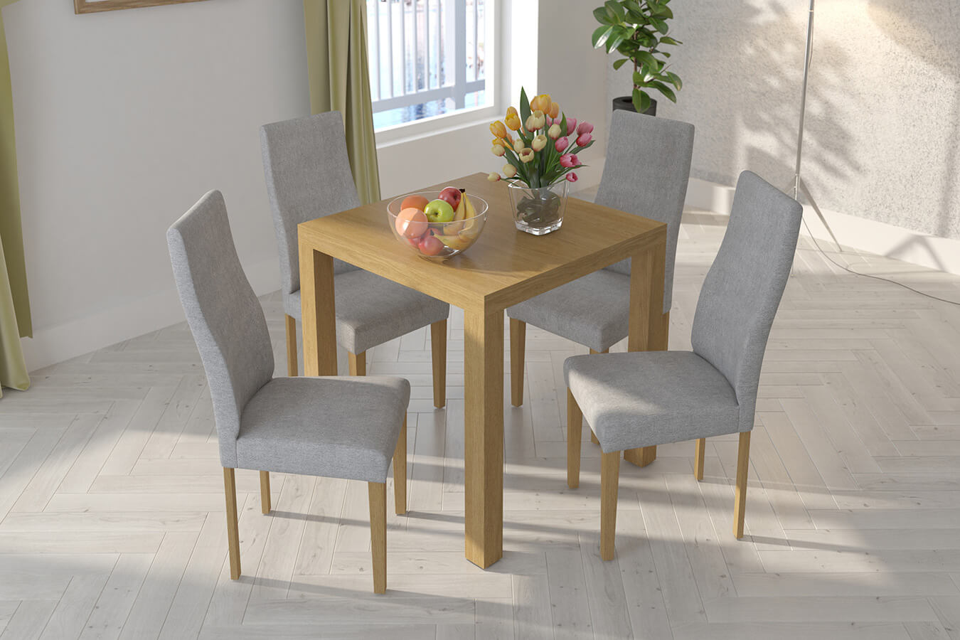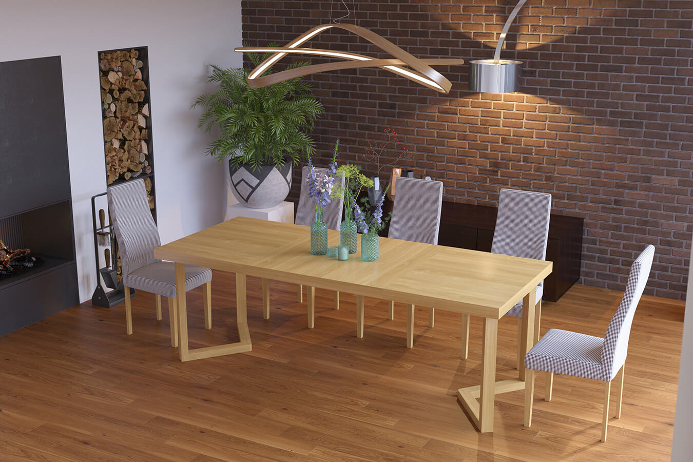 Materiał: drewno bukowe, tapicerowane, drewno dębowe