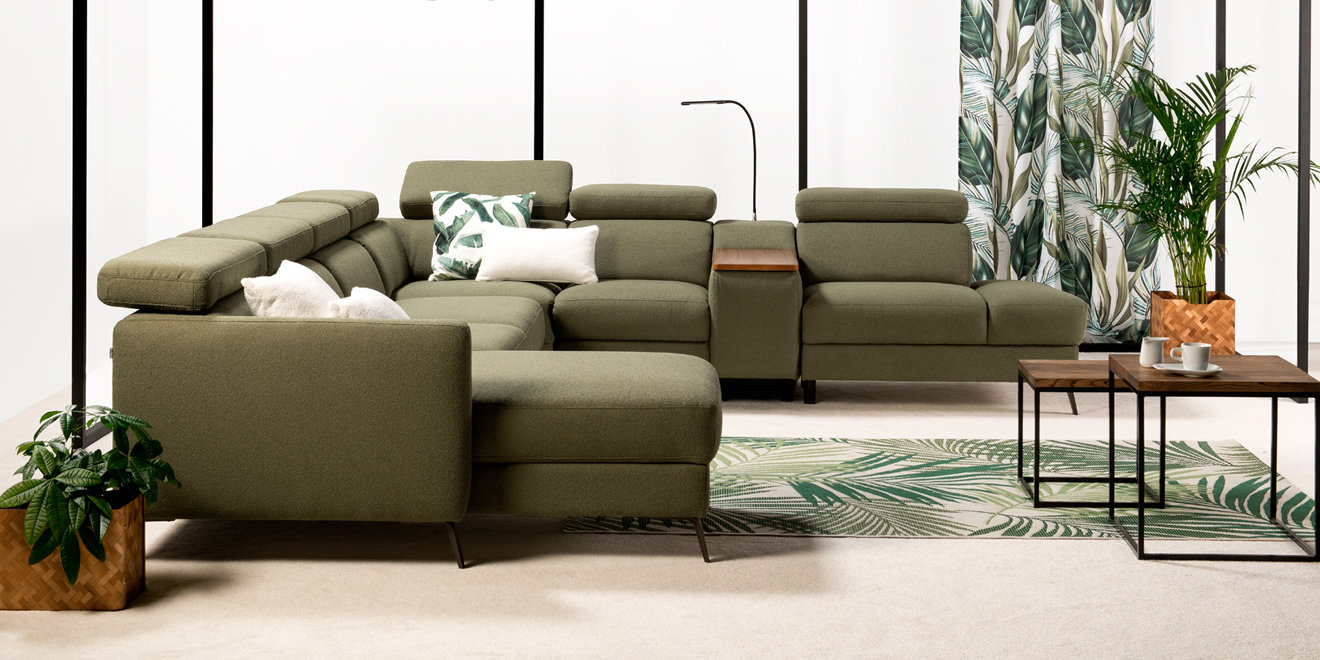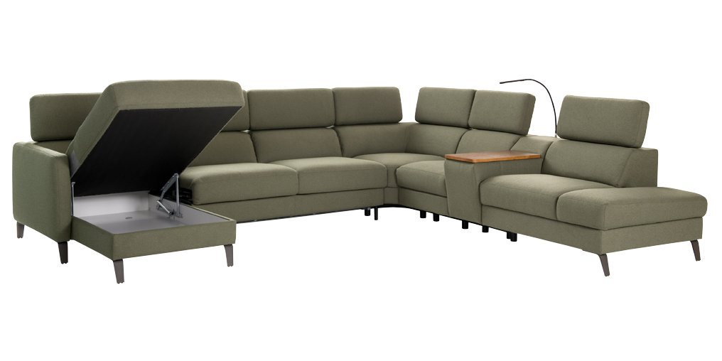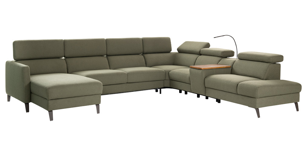 - rozbudowany układ narożny w kształcie litery „U” – idealny do większych salonów i rodzinnych stref wypoczynku,