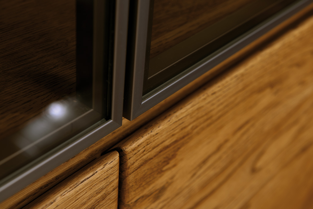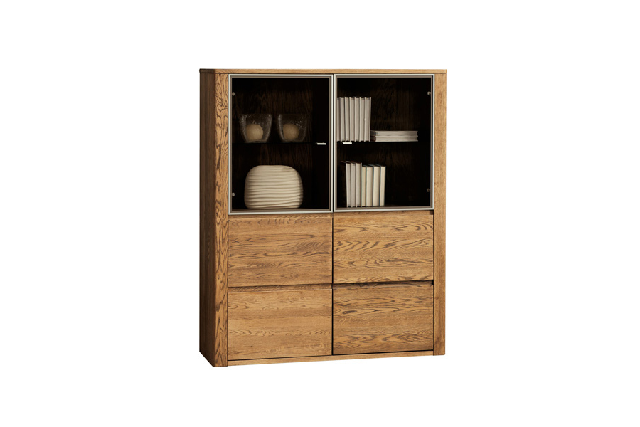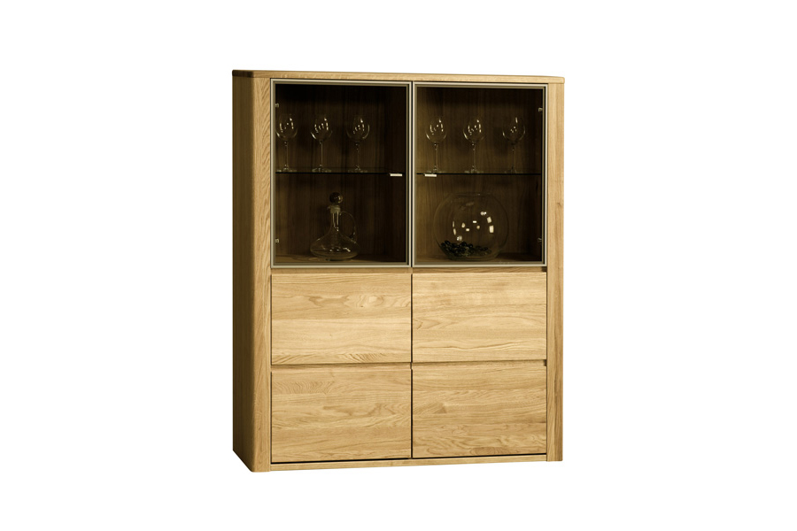 Witryna niska posiada 2x drzwi przeszklone, 2x drzwi pełne. Możliwość zamówienia oświetlenia.